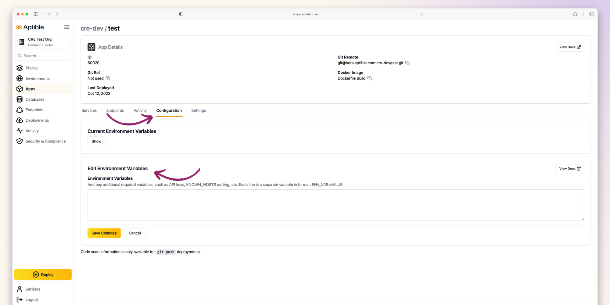 - Using the Deploy tool will allow you to set environment variables as you deploy your code