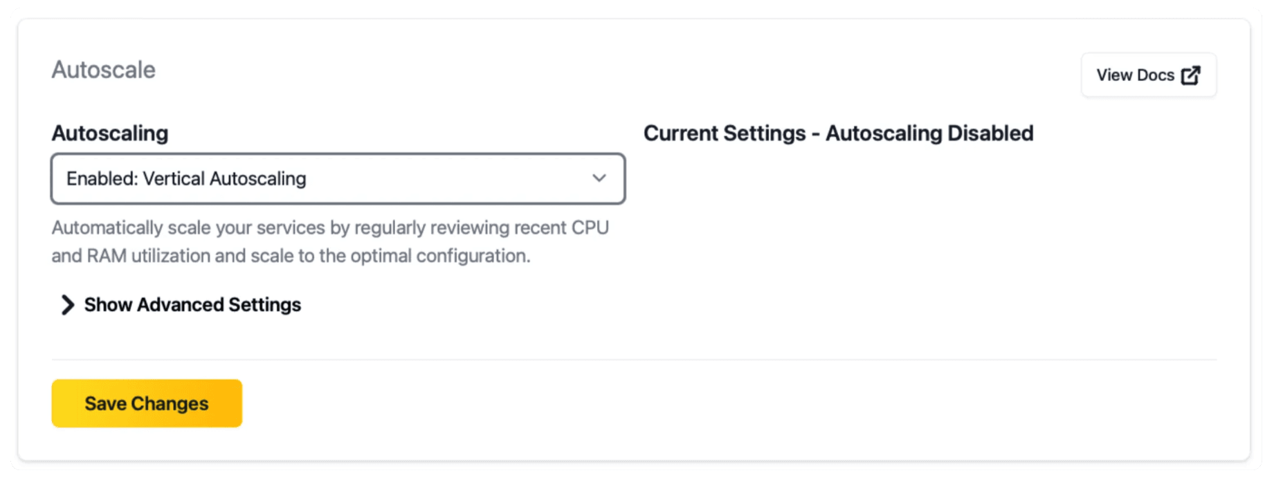 Vertical Autoscaling for Apps | Enterprise Plan Only: With the Vertical Autoscaling feature, container resources adjust dynamically based on CPU and RAM usage. This feature ensures consistent performance and cost efficiency without manual engineering work. This feature is only available on the Enterprise plan. See docs for more information, or contact Aptible support to get started