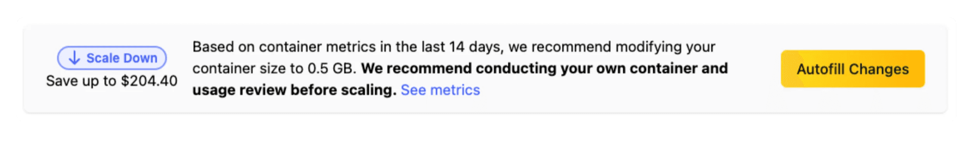 Manually Scaling: Use the Auto-Fill Changes button to quickly apply suggested adjustments to container resources. This approach allows you to manually update container configurations immediately.