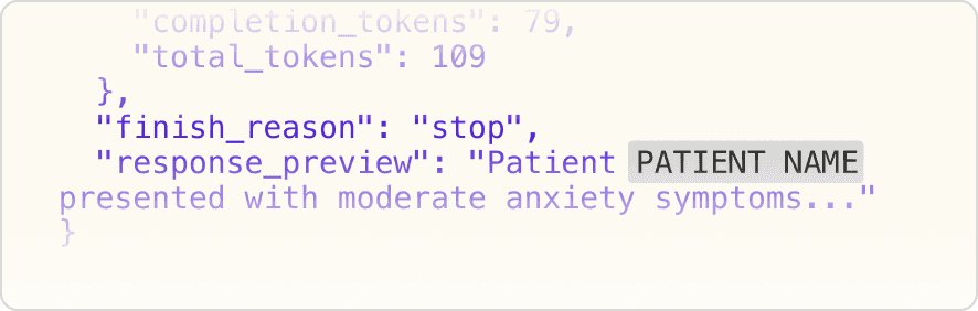 Reduce scope of PHI exposure by de-identifying sensitive data in requests and logs and restoring it only when needed. PHI is protected without breaking application logic or relying on manual safeguards.